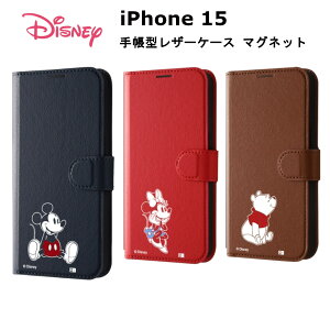 【商品説明】 イングレムから iPhone 15対応のミッキーマウス_sitting手帳型レザーケース シンプル マグネットケースが登場! カード収納+スタンド機能付き (C) Disney ICカードポケット...