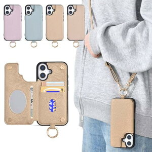 ■商品説明■ iPhone 16Pro スマホ ケース ショルダー おしゃれ スマホケース iPhone 16プロ ショルダー 斜めがけ 肩掛け 首掛け アイフォン 16プロ ケース 収納 ミラー付き...