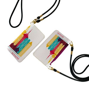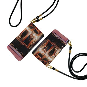 商品特徴・ショルダー付き手帳型スマホケース・シームレスな全面デザイン(内側は落ち着いたオフホワイト)・外側は高品質の人工革を使用・内側にはスマホを装着するケースが付属・機種専用のカメラホール仕様でケースを装着したまま