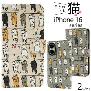 iPhone16シリーズ用 \にゃー!/干されてる猫手帳型ケース 猫好きなら気に入ること間違いなし!!いっぱいの猫達が干されている柄の手帳型ケースです。 ちょっとしょんぼりしている感じがして、見ていて飽きないかわいいケースです。 衝