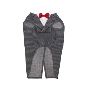お呼ばれの時も1枚で様になるタキシード風の犬用タンクトップです。 カラー:無地ブラック/ストライプチャコール 素材:無地ブラック:本体:レーヨン65%、ナイロン30%、ポリウレタン5%/別布:ポリエステル86%、ポリウレタン14%スト