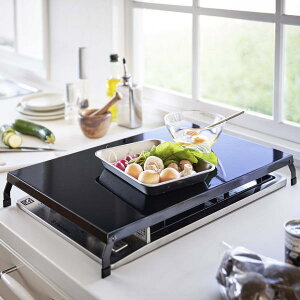 油はねや調理汚れをしっかりガードしてくれるラック。調理道具やスパイスの一時置きにも便利!ガスホースを通せる穴付き。IHクッキングヒーターやビルト
