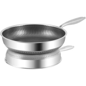 304ステンレス フライパン ih対応 フライパン 蓋付きノンスティックフライパン 耐熱ハンドル付き、7層の複合鍋底、ステンレス平底フライパン フライパン 卵焼き