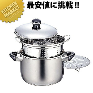 ■商品内容:約355×235×175mm(約876g・満水容量約4,000?)深さ:110mm ■商品材質等:本体・フタ:ステンレス鋼(クロム16%)(底の厚さ0.5mm)、ハンドル・ツマミ:フェノール樹脂(耐熱温度140℃)、目皿:...