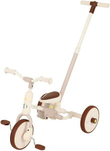 部品を組み替えて、三輪車からトレーニングバイクに変身! 工具不要の簡単組立。 ●三輪車 かじきり押棒付きで、高さは4段階に調節可能。フリーペダル機能搭載でペダルに足が届かない時は...