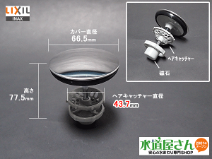 排水栓上部直径66.5MM,高さ77.5MM ヘアーキャッチャー部直径43.7MM、マグネット内蔵型