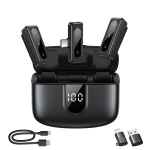 ワイヤレス 超軽量 38時間ノイズ低減 自動制限機能 ワイヤレスマイク カメラ/iPhone/Android Vlog撮影用 ミニワイヤレスマイク (2 TX + 1 RX + 充電ボックス)【超軽量...