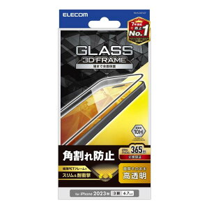 エレコム iPhone15 Pro Max ガラスフィルム 全面 フレーム付き 角割れ防止 365日交換保証付き 硬度10H ブラック PM-A23DFLGF3D設計のPETフレームで角割れを防ぐ、フレーム付き画面保護ガラスです...