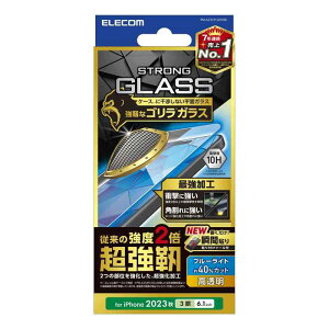 エレコム iPhone15 Pro ガラスフィルム ゴリラガラス 超強靭 強度2倍 エッジ強化加工 ブルーライトカット付き 40% 硬度10H 貼付けツール付き クリア PM-A23CFLGHOBL高硬度ガラスを更に強化...