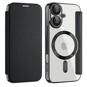 iPhone 16 ケース 手帳型 magsafe対応 6.1インチ 背面 透明 クリア 財布型 アイフォン 16 ケース マグセーフ 手帳 ワイヤレス充電対応 カード入れ PU革 レザー スマホケース...