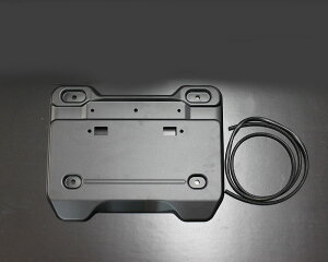 定価:18,000円(+税)バックドアライセンスガーニッシュ単品 ●スペアタイヤキャリアを外して、バックドアのセンターにナンバーを移設するベース。ABS製でマットブラック色。車体への穴あけ不要。フチゴム、配線引き込み用の貫通ボルト付