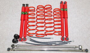 2インチスプリング、ロングショック、ラテラルロッド、ブレーキホース、キャスター角補正ブッシュ、のセットです JB64系全車に適合、車検対応 業販などお問い合わせ 0774-43-7408黒川まで