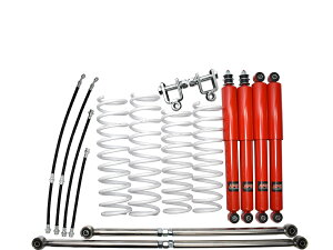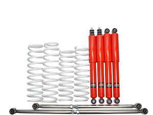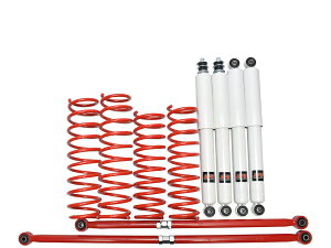 車種: ジムニーシエラ 型式: JB74W 備考: 構成パーツはコイルスプリング、専用ショックアブソーバー、ロングブレーキホース、キャスタードリーム、ラテラルロッド、リアラテラル補正ブラケット、リア大容量バンプラバー...