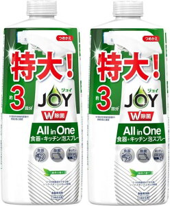シンク料理食器洗い ジョイW除菌AllinOne食器+キッチン泡スプレー。緑茶の香り。 2つの除菌成分で食器・調理用具・シンク・コンロ・グリル・コンロまわり・調理台、調理家電の外側やシンクまわり等の洗浄、スポンジ・ふきん・プラスチック
