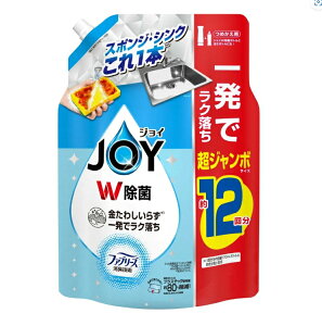 ?ジョイ W除菌 食器用洗剤 さわやか微香 時短すすぎ+強力洗浄 ?2つの除菌成分でスポンジ除菌 ?つけ置きなしですぐ洗える ?超特大ジャンボサイズ 約13回分※1回分を通常ボトル内容量170mLの約8分目と設定...