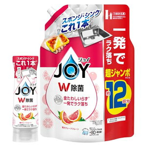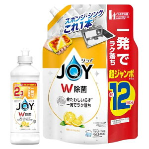 【商品紹介】 ジョイ W除菌 食器用洗剤 さわやか微香 時短すすぎ*と強力な洗浄力を兼ね備えた洗剤です。 つけ置きなしで素早く洗浄でき、2つの除菌成分でスポンジも清潔に保ちます。 閉じて保存できるキャップ付きで...