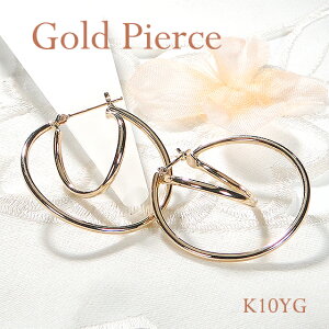 【送料無料】【代引手数料無料】【品質保証書】 ◆大人の輝き!ゴールドピアス ☆K10ゴールドの地金のみで作られた、立体感と動きのある2連フープピアス。 大きさの異なる輪が上品に重なり合ったデザインです。あたたかみのあるイエロー
