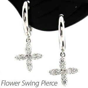 人気のフラワーモチーフのフープダイヤピアス。 ダイヤを2石ずつ使い4枚の花びらを形どりました。 フープにぶら下がってヒラヒラと花びらが揺れて、キラキラと輝きます。 普段使いから、特別なシーンまで幅広くあなたを演出してくれる