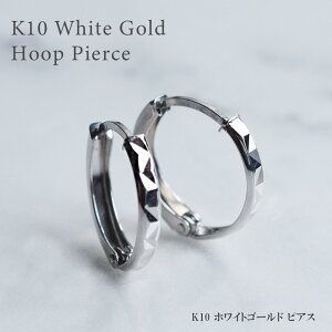 商品説明 美しいカッティングを表面に施したフープピアスをご紹介。 動くたびに光をとらえてホワイトゴールドが上品にきらめきます。 シンプルな中にセンスの光るデザインです。 金属部分は全て10金ホワイトゴールドを使用...