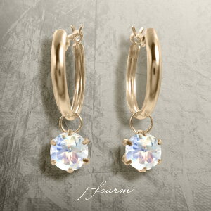 パチンと閉じて引っかかりもありません 送料無料 ホワイトゴールドk10 キュービックジルコニア ピアス フープピアス 4月誕生石...