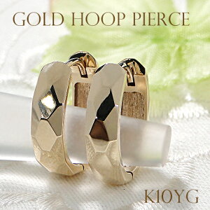 数料無料】 煌びやかなフープ型ピアス 光の角度でキラキラ輝く多面カットが印象的なデザインピアス。K10のフープにカット模様を施すことで生まれる光の乱反射は、ピアスひとつで耳元にきらめきをプ