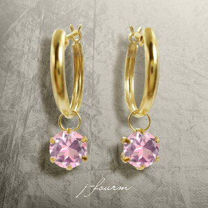 ダイヤモンドが存在感たっぷりに耳元を飾るフープピアスです。 遮断式ピアスポストのフープピアスは楽に着け外しができます。 カジュアルにもフォーマルにも似合うフープピアスは、プレゼントにもおすすめです