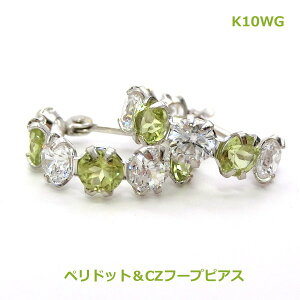 ★天然カラージュエリー★ ■S P E C■ 商 品 名 K10WG ペリドットCZフープピアス■771141-180 使用貴金属 K10WG 使 用 石 ペリドット キュービックジルコニア サイズ...