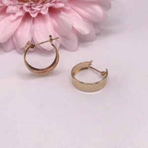 10金ピンクゴールドの中折れフープピアスです 【使用地金】 10金ピンクゴールド 【サイズ】 1正面ー横:約5mm 2正面ー縦:約10.7mm ...