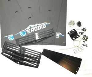 デリカD:5専用マッドフラップ。 KADDIS専用マッドフラップのカラーロゴバージョン。 フラップはブラック地にシルバーとブルーのカラー仕様。 そして付属のハンガーキット表部を水圧転写にて カーボン柄...