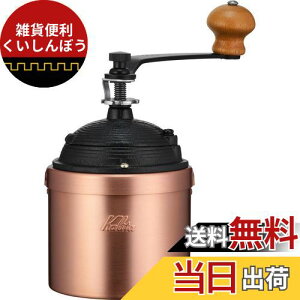 カリタの手挽ミルシリーズ 硬質鋳鉄製臼歯使用の銅製の手挽きコーヒーミル インテリアとしても楽しめる主な仕様 サイズ(約):95×95×150mm。 本体重量(約):893g。 素材・材質:本体/純銅製...