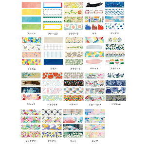 かさばらないから「持ち歩ける」 切れているから「使いやすい」 4種類のマスキングテープがコンパクトなカードサイズになりました! 使いたい柄を台紙から1枚ずつ切りとり、テープを裏紙からはがして使用します。 折りたたむとカードサ
