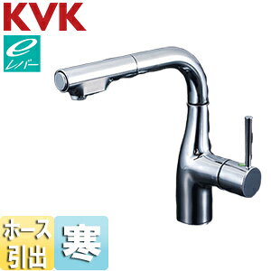 KVKシングルシャワー付混合栓 KM6101ECHS 吐水口長さ:277mm 取付穴径:φ35〜39mm 一般地仕様 eレバー水栓(レバー中央水吐水) シャワー引出し式 ブレードホース・クイックファスナー式...