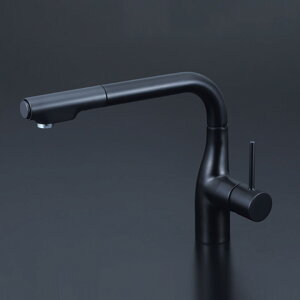 【規格・特徴】 ・一般地 ・流し台用シングルレバー式シャワー付混合水栓 ・eレバー水栓(レバー中央水吐水) ・シャワー引出し式 ・ブレードホース/クイックファスナー式 ・黒ニッケルめっき ・水受けトレイ付 ・吐水口回転規制160度 【商品