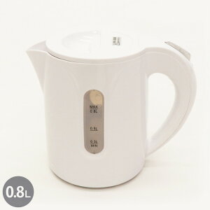 お湯が沸いたら自動でスイッチOFF ●商品サイズ(cm) 幅約20.2×奥行約13.1×高さ約18.5 ●商品重量 約0.6kg ●消費電力 800W ●容量 0.8L (検索用:電気ケトル ケ