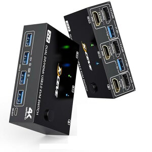 【HDM+DPUSB3.0KVMスイッチ】このKVMスイッチ2モニター2コンピューターは、USBスイッチと2コンピューター用モニタースイッチを1つに組み合わせ、2モニター、2コンピューター、4USBデバイスを簡単に管理できます...