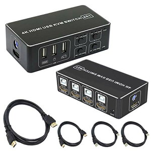 USBキーボード、USBマウスに対応しUSB2.0ハブも切替え出来る操作性に優れたBOX型HDMI-KVM1組のHDMIディスプレイ・USBキーボード・USBマウスで4台のパソコンを切り替えて使用できます...