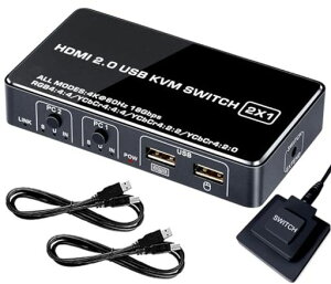 KVMスイッチ-NUIKOTI HDMI KVM切替器 2入力1出力 4K@60Hzをサポート 2台のコンピューター用のUSB スイッチ キーボードマウスプリンターと1台のHDモニターを共有 USBケ...