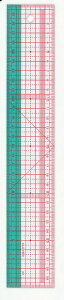 目盛や数字の入っている箇所がひと目で分かり、濃い色の布地や柄物の布地の上でもより見やすくなりました。また、定規の周囲の目盛の背景「カラーライン」は、縫いし