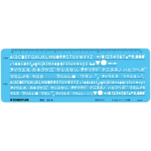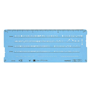最初に薄く直線を引き、その上にスペーシングラインを重ねて文字を書くと、綺麗に文字が並びます。 ●色:ブルー・片つや片マット ●材質:対衝撃アクリル樹脂(PMIMA) ■0.3mmシャープペンシル用 ■文字高:3.0/2.5/2.0mm...