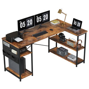 Maihail l字デスク 机 pcデスク 学習机 勉強机 パソコンデスク 右棚左棚 幅99cm コーナーデスク つくえ 棚板高さ調節可能 作業机 L字型 リモートワーク ラック付き ピンテージブランド:...