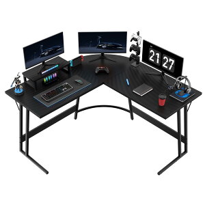 ゲームと仕事両立: パソコンデスクとしてはもちろん、ゲーミングデスクとしても使用できるお洒落なL字デスク。お部屋のレイアウトに合わせてラックの位置を変更できます。モニター台を利用して目線をあげることで...