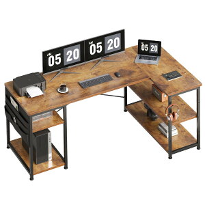 YeTom l字デスク ゲーミングデスク デスク 幅150cm pcデスク コーナーデスク 棚板高さ調節可能 収納袋付き L字型 PC 勉強机 作業 在宅勤務 リモートワーク ゲーム 書斎 収納ラック付き...