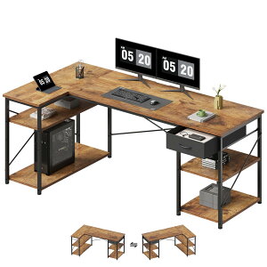 十分な収納スペース:デスクのL字型デザインは、コンピュータ、ラップトップ、その他のオフィスアクセサリ用の十分なスペースを提供し、2つの棚には本、書類、その他の必需品を追加で収納できます。Jopsavm棚は戦略的に配置されており...