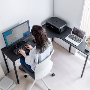 奥行40cmで隅々まで手が届くL字デスク。コーナー空間を有効に使えるコーナーデスクで、リモートワークや在宅勤務に最適。クランプ製品も取り付け可能で、天板の上下の空間をうまく利用できるパソコンデスク。
