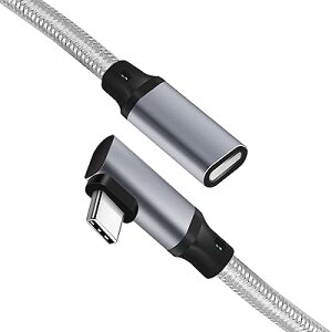 USB type C 延長ケーブル (3m, グレー) L字型 LpoieJun USB 3.1 Gen2(10Gbps) 高速データ通信/ 4K@60Hz映像出力/100W PD急速充電 USB C...