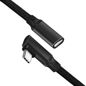 USB type C 延長ケーブル (3m, ブラック) L字型 LpoieJun USB 3.1 Gen2 (10Gbps) 高速データ通信/ 4K@60Hz映像出力/100W PD急速充電 USB...