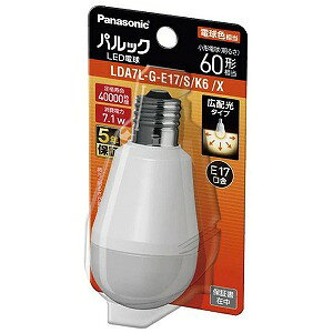 パナソニック ミニクリプトン型 パルック LED電球 口金 E17 電球60W形相当 電球色相当(7.1W) 小形電球・広配光タイプ 1個入 断熱材施工器具 密閉器具対応 LDA7LGE17SK6 廊下・階段・玄関・浴室に適しているL...