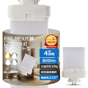 商品名 LEDコンパクト蛍光灯 口金 GX10q通用口金 消費電力 4W 全光束 800LM 色温度 電球色3000K/白色4000K/昼白色5000K/昼光色6000K 照射角度 210° 演色性 Ra>85...