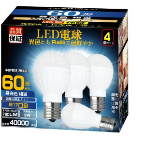 LED電球 E17 全方向 40形相当 昼白色 トップランナー制度対応、2017年度省エネ法目標基準値達成のLED電球です。白熱電球のように全方向に明るい全方向タイプなので、トイレや階段などの照明に最適なLED電球です...