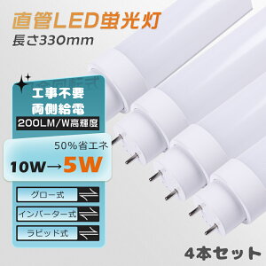 LED蛍光灯 10W形(工事不要タイプ)【4本セット】 消費電力 5W 全光束 1000LM 200LM/W 口金 G13(180°回転式) 入力電圧 AC85V〜265V 50/60HZ 給電方式 両側給電(片側給電の場合に...